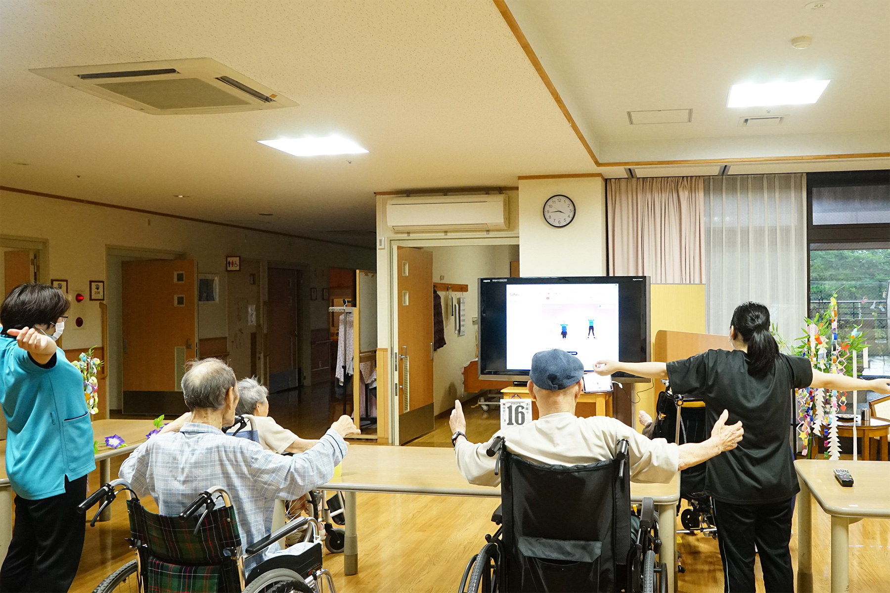 食後や日中には、体操やゲーム、手作業などのレクレーションで、笑顔の時間を共有しています。