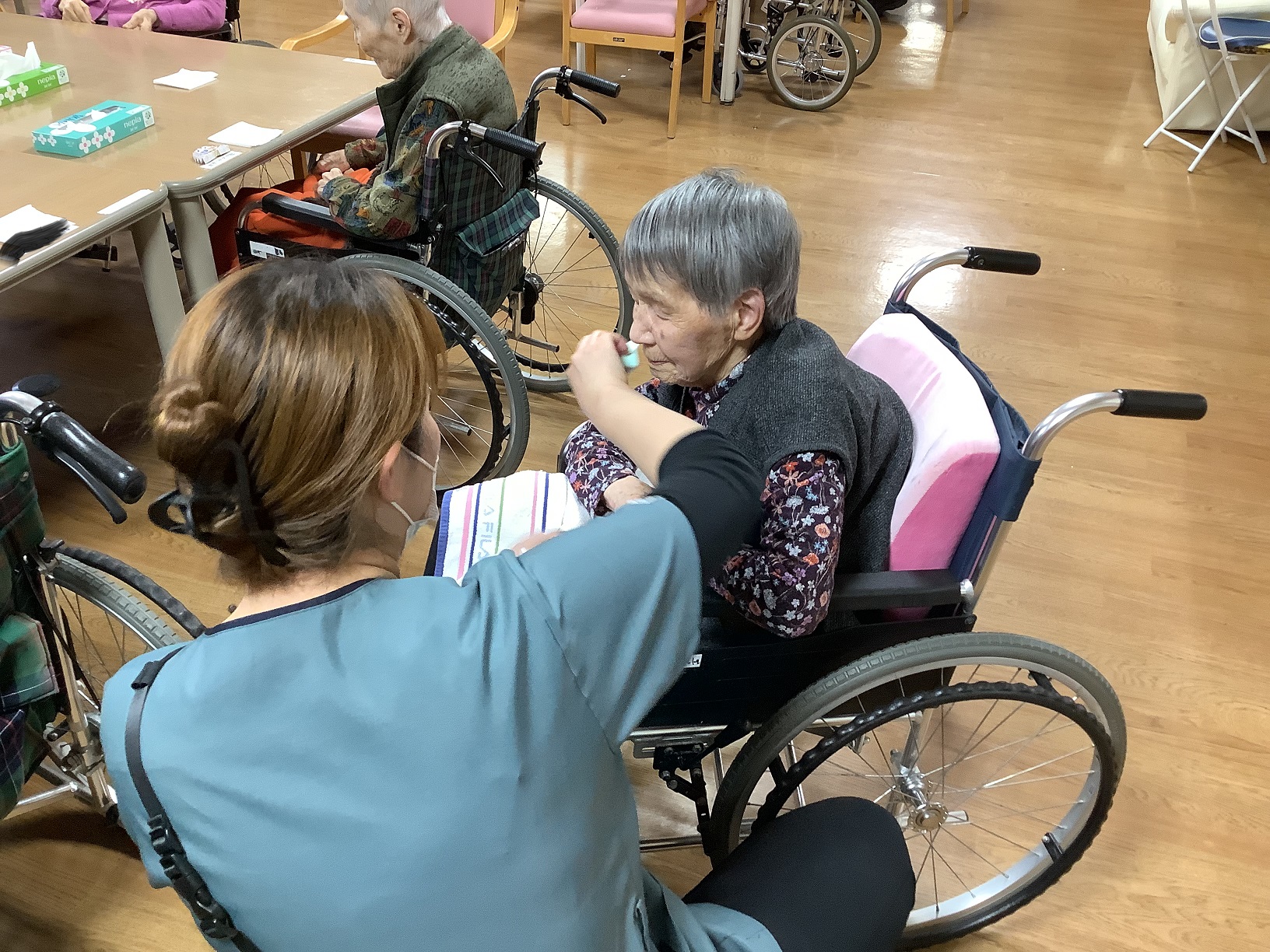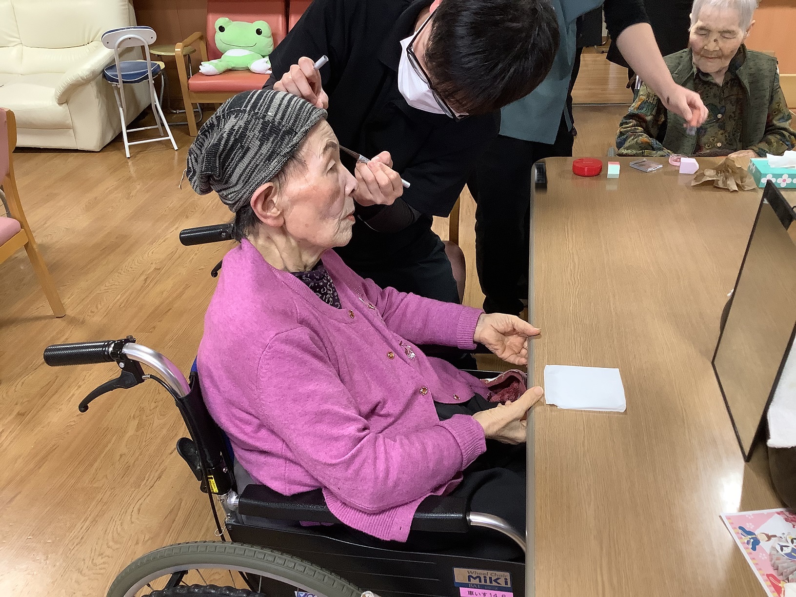 鏡を見て「久しぶりにお化粧したよ」「若返ったみたい」と嬉しそうに話されていました。