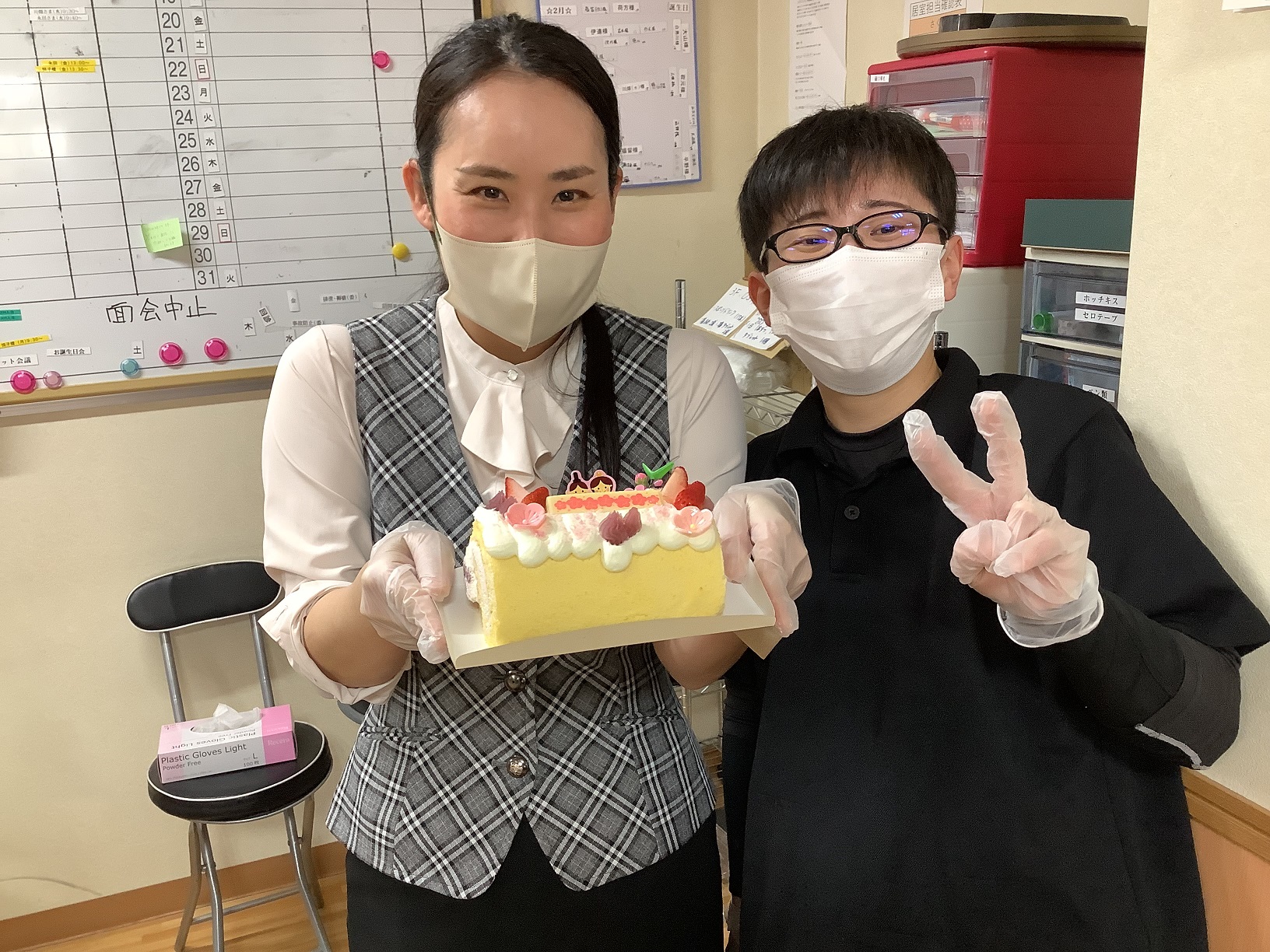 事務の方が心を込めてこの日ためにケーキを作ってきてくださいました