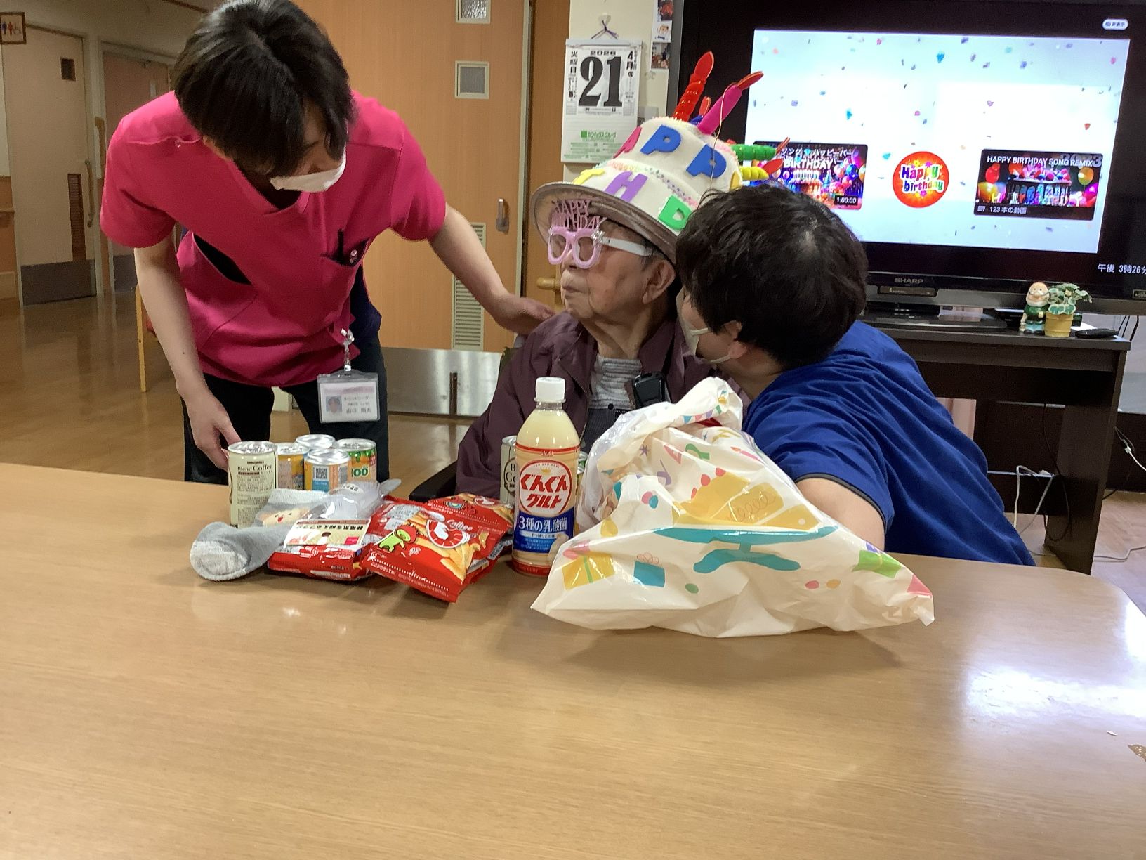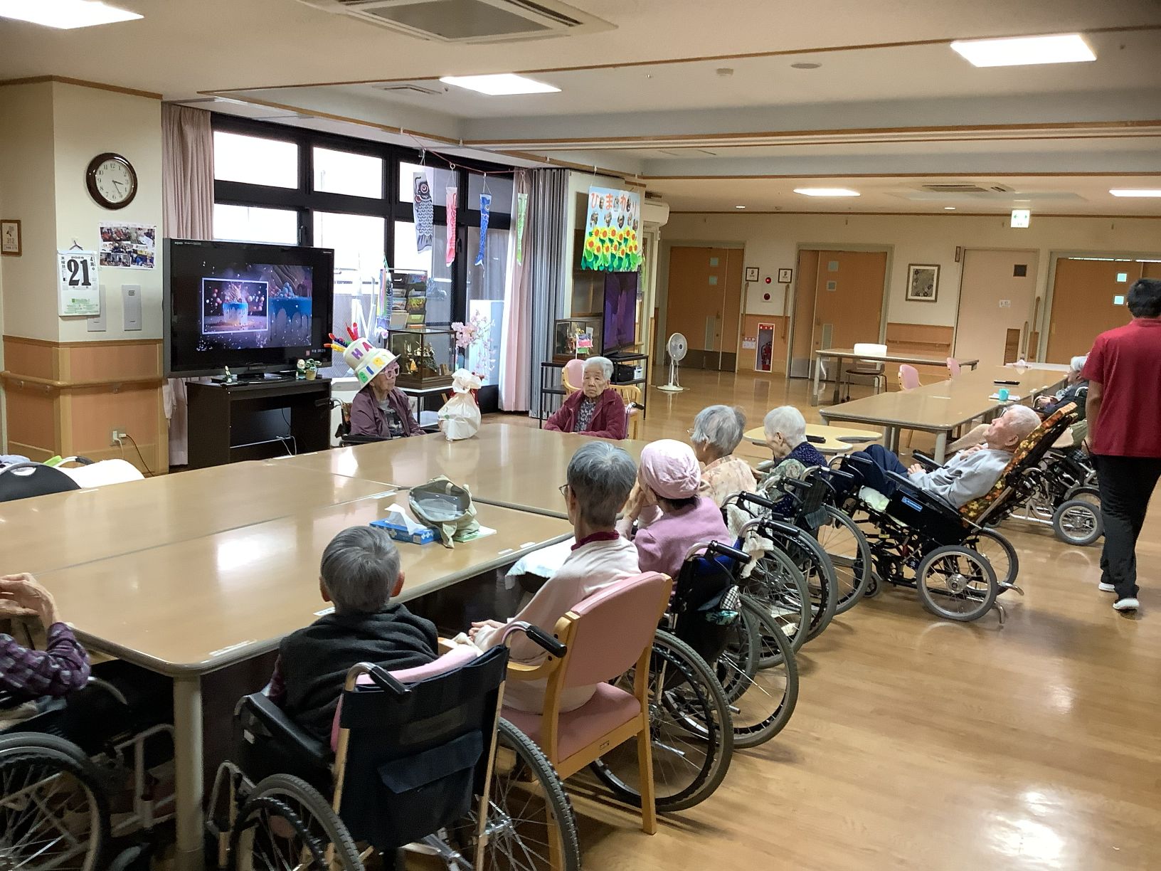 皆さんでお祝いの歌を歌ったり拍手やお祝いの言葉を送り笑顔に包まれました😊