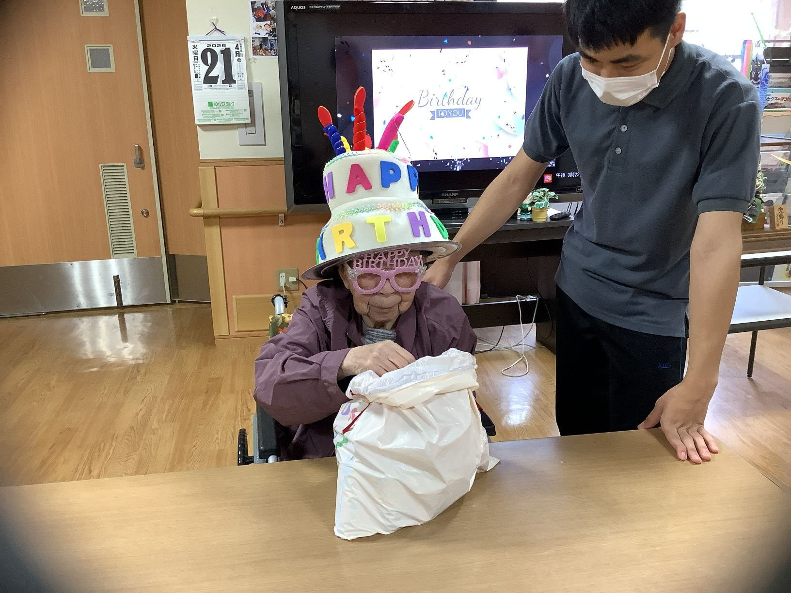 プレゼントをお渡しすると「何が入ってるかな~」と楽しみにされているご様子が見られ開けた瞬間には笑顔があふれていました☺