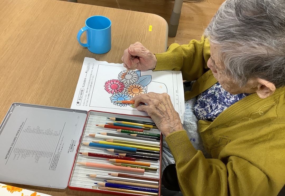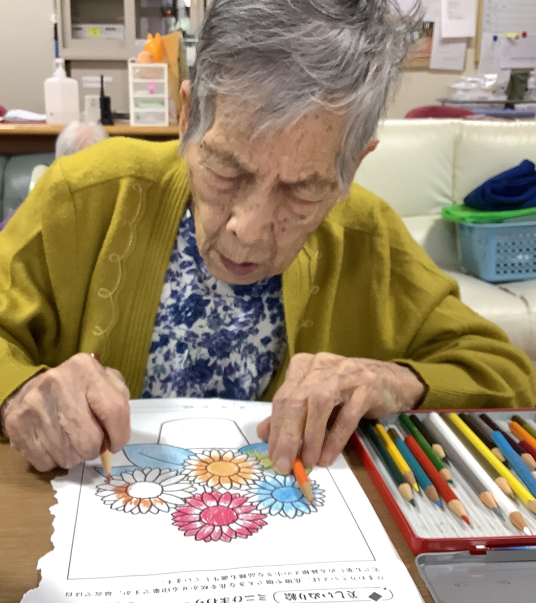 真剣なまなざしで塗り絵をされてます(*´∀`)