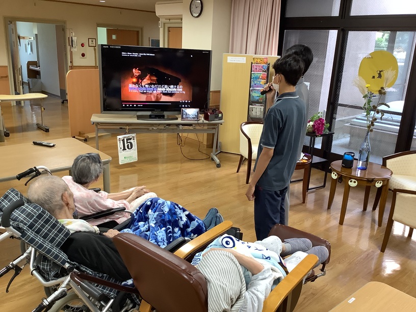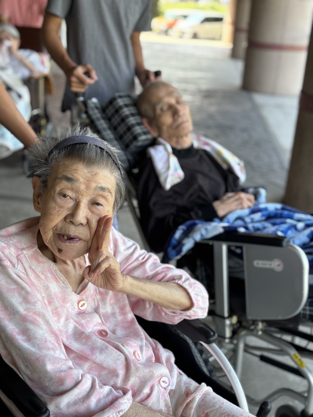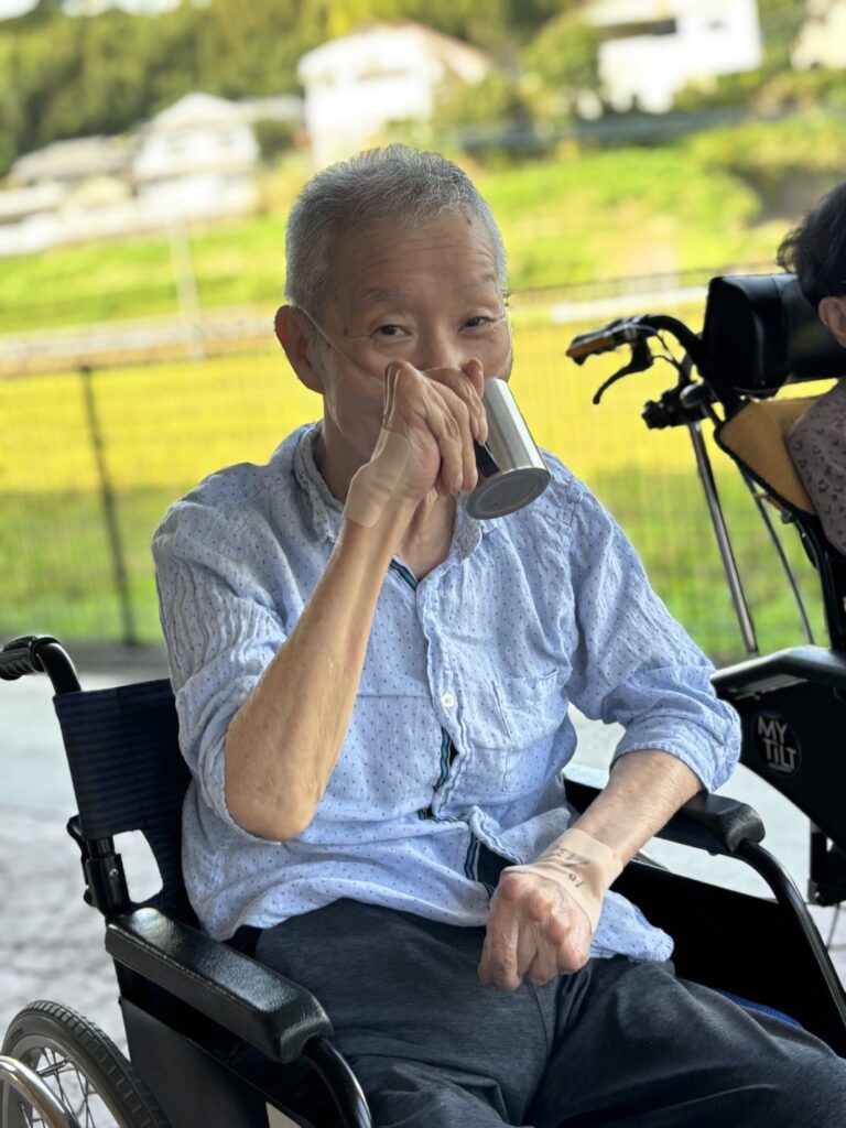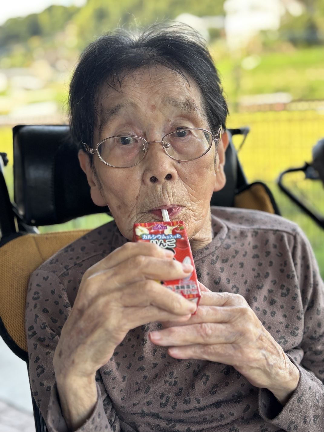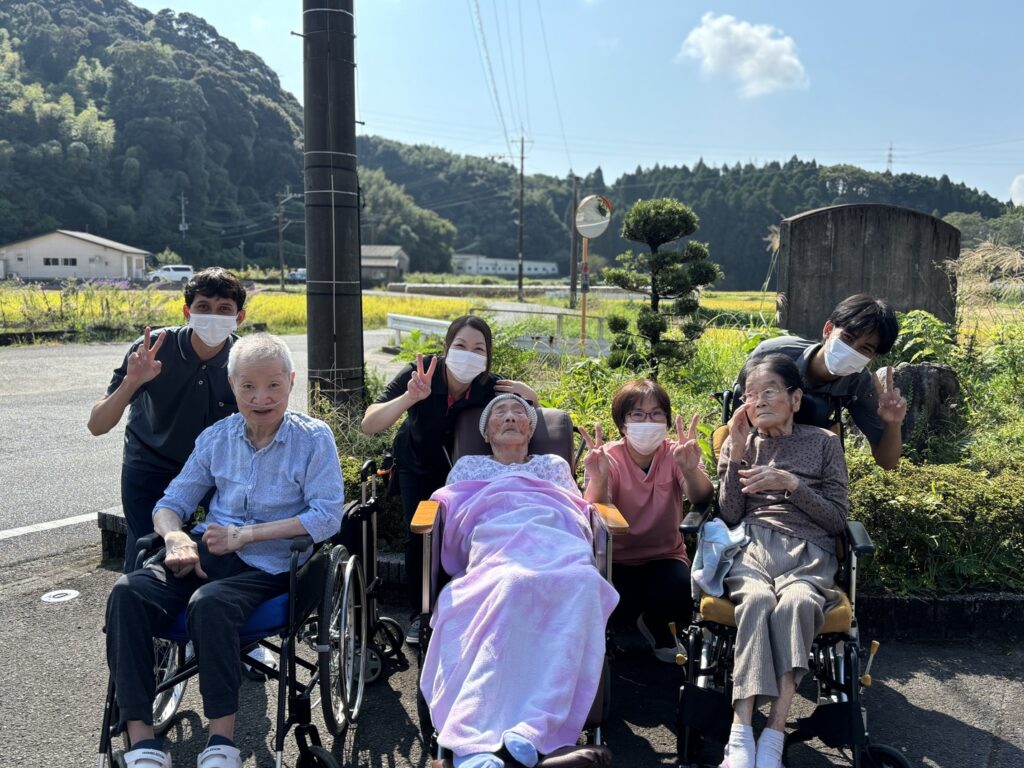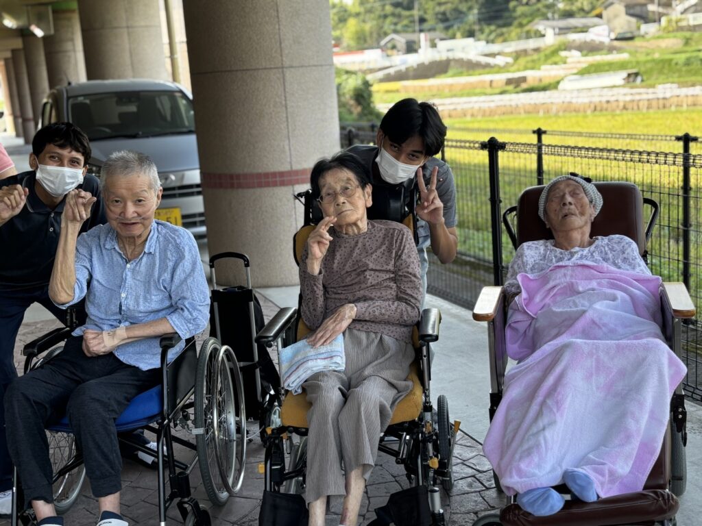 午前中は、外気浴で目の前に広がる田んぼを見ながら昔話にはながさく。もうすぐ、新米が食べれるね~🌾