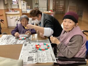 スタッフと一緒にクリスマスリースを作成しました✂