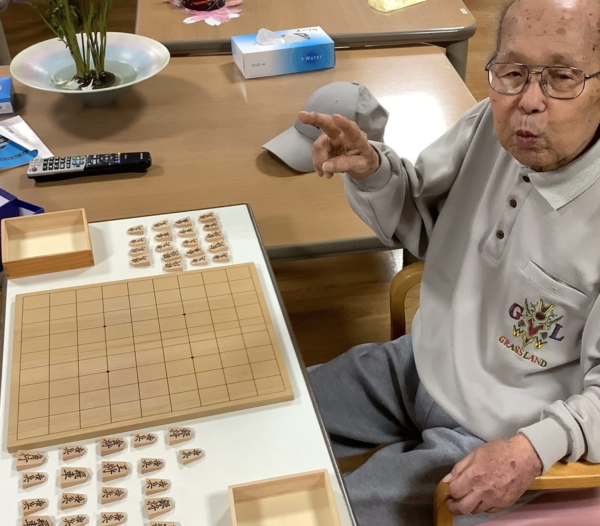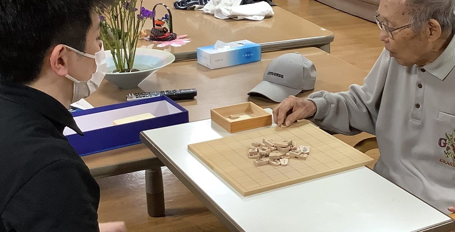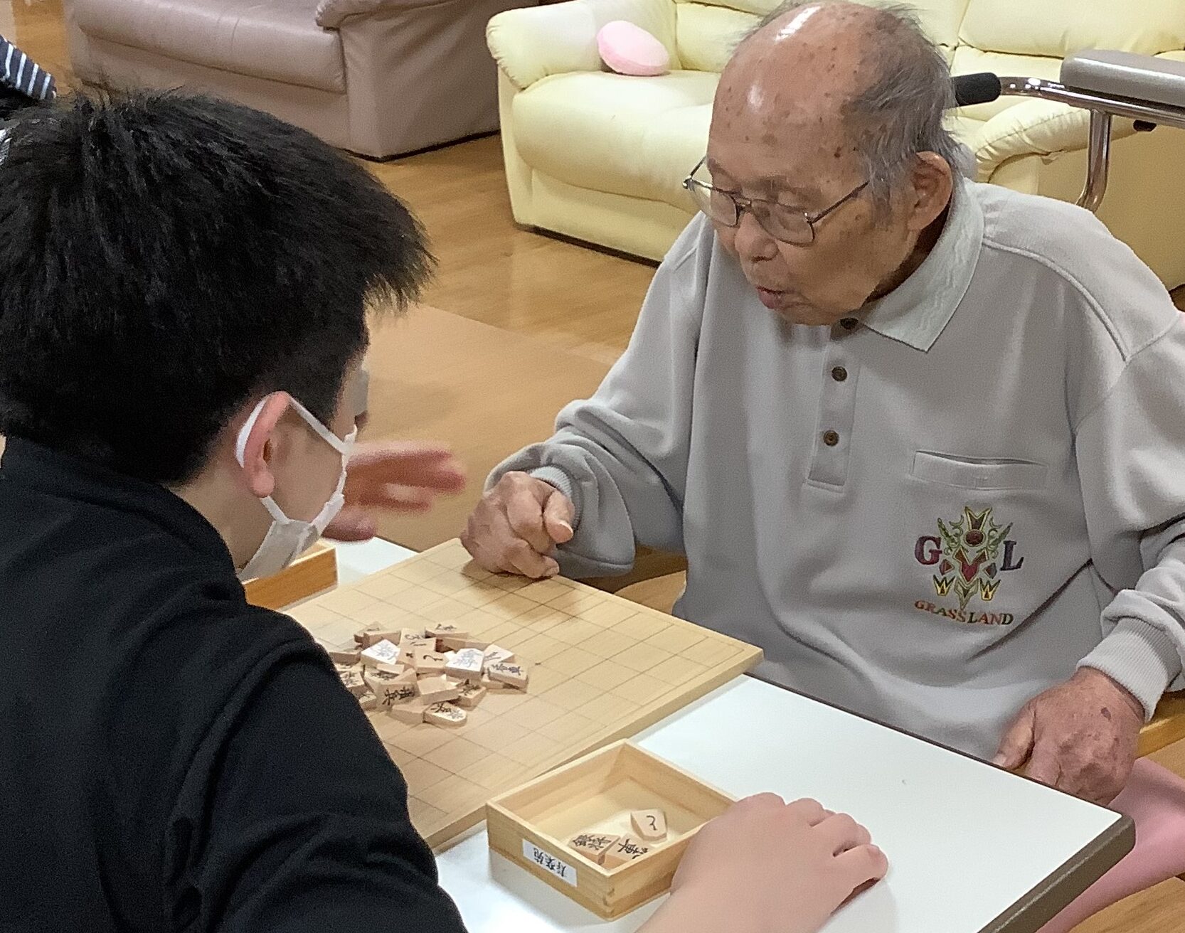 ご利用者様と将棋倒しで真剣勝負しました。
